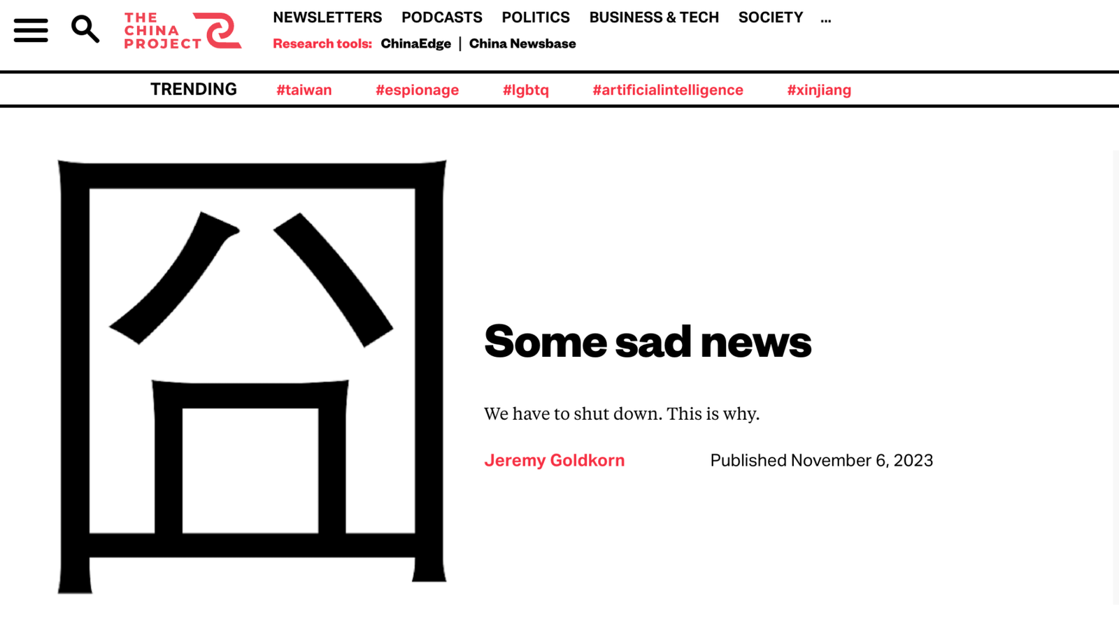 Launched in New York in 2016, the China Project quickly became a central figure in discussions about China. It covered a diverse range of topics, including the economy, defense, human rights, culture, and history. It notably featured columns on the Chinese government’s human rights abuses in Xinjiang and LGBTQ+ life in China. However, the November 6 announcement by Goldkorn, who is based in Nashville, Tennessee, marked the end of its journey.
